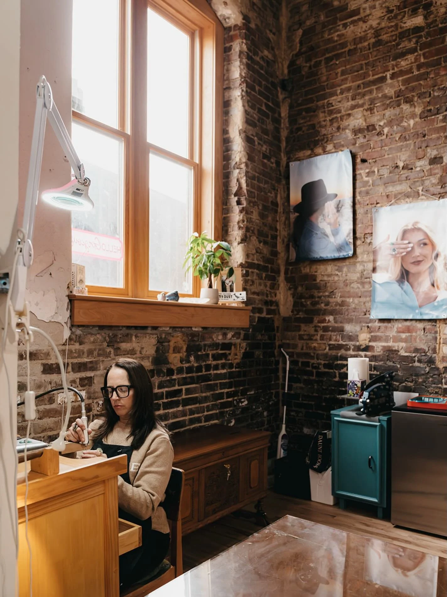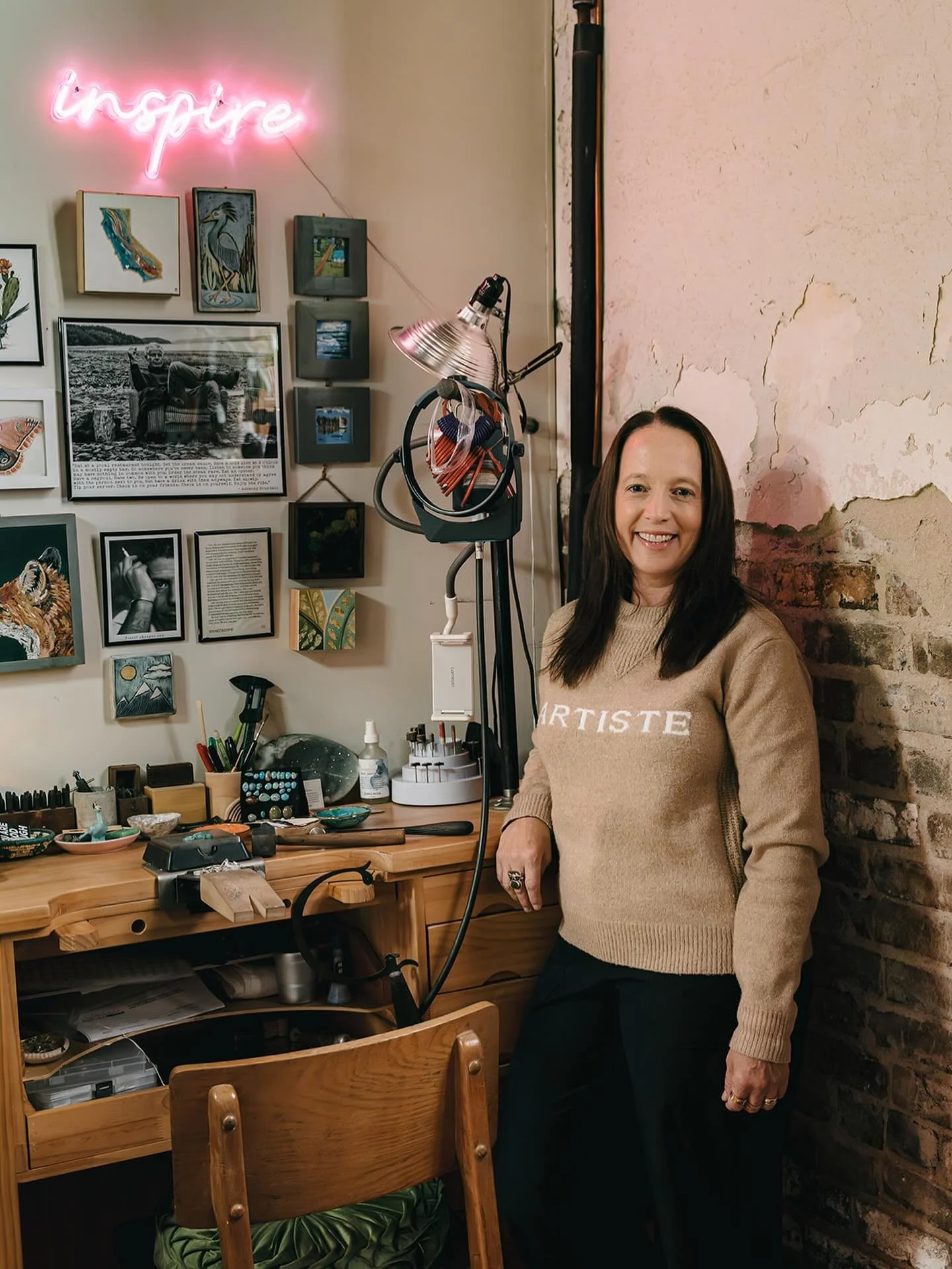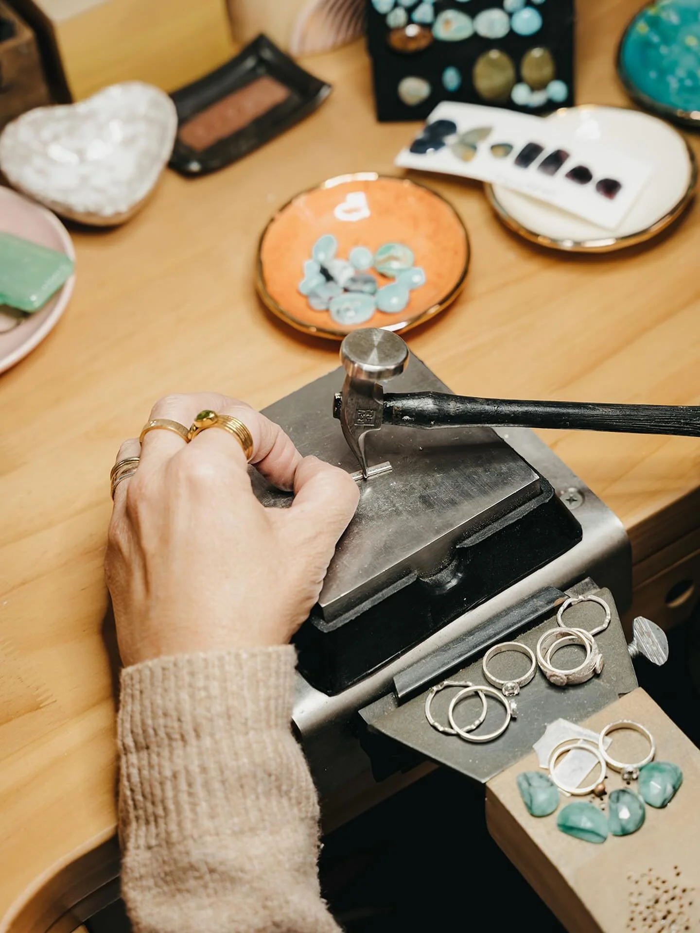 My process begins by choosing a stone and metal that call out my Inspiration. I take to paper, tracing the stone. When my pencil hits the paper I am free. My designs draw on adventure and travel with a modern interpretation. In my studio with the sunbeams finding its way across my bench and a cup of steaming cofffee next to me I release it all onto paper and then into each piece. This is my memoir.